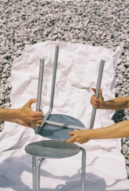 De SCRAP-Chair is een circulaire tuinstoel, volledig vervaardigd uit industriële reststromen van de Vlaamse industrie. Ontwerper Tom De Koninck, alumnus van de bachelor-na-bachelor Meubelontwerp (VOMO), zag tijdens zijn studies wat velen nog missen: afval is grondstof in wachtstand.